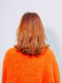 ミディアムレングスにパーマをかけたスタイル!カールはランダムに毛先の動きをつけてカジュアルな印象に!ヘアカラーはオレンジ系の明るめにするとツヤ感も増して秋っぽい仕上がりになります!