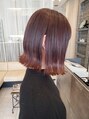 優しくピンクを効かせた暖かみのあるミディアムボブスタイル