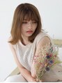 ベースにハイライトを入れることで、透明感のあるカラーを演出することができます。柔らかいベージュとミディアムヘアが相性ピッタリのスタイルです!