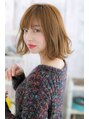 シースルーバングミルクティーブラウンくせ毛風前下がりロブb/ホットペッパービューティー