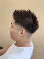 横後ろ際0.5mmからのグラデーションのフェードカット。上は全体前に流したジェットモヒカン。カラーは職場やバイトでもひっかからないブラウンカラー。ここまで短くすると、持ちがすごく良いです。また、この刈り上げ具合がクセになります!