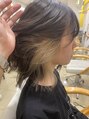 インナーカラーをブロンドカラーにして結んだときにしっかり見えるようにデザインしています。おろしたときは落ち着きのあるグレージュカラーにしてます。