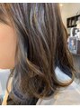 サイドインナーカラーのスタイル。ブリーチの履歴は1回と、何度がインナーカラーをいれていて、かなり明るくなっている髪質です。本来なら、2回ほどのブリーチでできると思います。色には、ブルーアッシュと、ラベンダーアッシュを配合