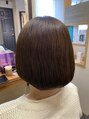 【気に入って頂いたスタイルは、ブックマークをしてご提示ください】前下がりボブ。丸みシルエットのボブに、ベージュブラウンが重く見えがちな硬い髪も柔らかく見えます。ウォーターフォール 幅広い年齢のお客様にご来店して頂いてます。