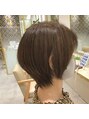 ショートスタイル。襟足の長さにお悩みの場合でも、丸みとタイトにするポイントのバランス調整でスッキリとした印象のシルエットに。