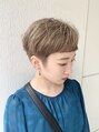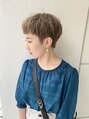 透明感ベージュカラー×大人耳掛け&前下がりショートスタイル