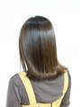 【中村ヘア】平行ボブラインの下の方に少し段差をつけたミディアムストレートスタイル。内側の毛先は外ハネにして軽い動きが出るくらいのセニングを入れてます。