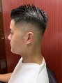 まわり0.4ミリから6ミリのスキンフェードジェルで前髪は8:2でかきあげて片方は抑えるスタイルセットする時間も短くて簡単に決まります