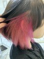 サイドとバックをブリーチしています。上の部分は、ラベンダーやブルーアッシュ系で、下のインナーはピンク系の色を濃いめで染めてあります。