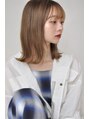顔まわりのハイライトがお洒落なフェイスフレーミングカラーは、耳掛けしてもかわいトレンドデザイン。シースルーバングでよりお洒落な印象に。カットはスタイリング簡単な切りっぱなしミディアム。