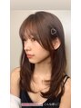 カットポイントは韓国女優前髪のポイントは顔回り多めに、前髪無し有でも作れます☆フェイスラインにそって骨格修正していき小顔◎もみあげにちょこっとピロ毛をだすのがPoint!!優しいパーマのなのでふんわり自然に流れてアンニュイに仕上げます