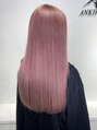 3回以上ブリーチの履歴がある髪にピンクベージュを入れ、ホワイト系ピンクのエクステを70枚つけています。明るさを重視した透明感溢れるカラーになっています。