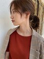 シークレットハイライトで赤みをおさえてベースを作りその上からベージュをオンカラー透明感・抜け感がより今っぽさを!カットは、肩下のロブ 巻いたり結んだり扱いやすいスタイルです!仕上げは、オイルのみで簡単です。