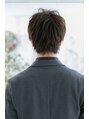 長めバングで表情をチラ見せして色っぽく仕上げたサイドパートショート。トップにふわっとボリュームを持たせてスタイルアップ効果もバッチリ。ニュアンス感ある動きを出したフェザーマッシュは優し気な雰囲気のモテスタイル。マットな質感がお似合い。