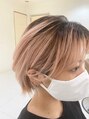 根元は地毛で、毛先のみのブリーチで、淡くピンクを。