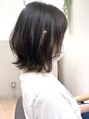 肩上ラインのボブをベースに表面にレイヤーを重ねて入れることで、毛先の動きを出やすくしてます。カラーはアプリエカラーを使用し、赤味を抑え透明感を出したオリーブグレージュです。