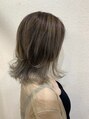 バレイヤージュを入れて、アディクシーペールシルバーを使いました。長さはロブ。トップに段差をつけ動きをだしました。