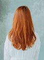 今が旬のアプリコットオレンジで柔らかいキュートな女性像を作り。カットはレイヤーの切り口を重ためにカットすることで、Aラインを主張することができます。普段のロングスタイルに飽きた方は是非。