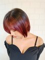インナーカラーにトレンドカラーのレッドを入れたデザインカラーボブ♪まずはしっかりとブリーチでデザインを作ります!表面には細かめのハイライトがたくさん入れて、ONカラーで色味の調整を行います(^^♪根元からグラデーションなのもポイントですね!!