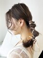 サイドでローポニーにし、紐を巻き付け顔周りはウェットに。【気に入ったスタイルは「ブックマークする」ボタンを押して、ご来店時ご提示ください】グラデーションカラー,小顔,マッシュ,ふわミディ,花嫁,耳かけ,厚めバング,前下がりボブ,ナチュラルボブ