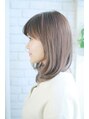 毛先のワンカールミディアムヘアー。毛先がハネる事がなく、まとまりやすいのでお手入れが簡単と好感度な人気のヘアースタイルです。
