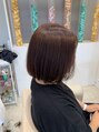 真っ直ぐなラインのボブにツヤが出るほんのりピンクのブラウンにしました。