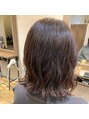 切りっぱなしボブにカットし、毛先外ハネ&表面にゆるウェーブのMIXパーマです。ゆるく波打った動きが、ラフでシンプルなファッションに合うと思います♪N.カラーで赤味を抑えたチャコールブラウンに。