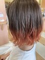 毛先にブリーチをしてオレンジ系を。ベースは暗めなので根元の伸びてきた感じが気にならず明るい髪を楽しめるおしゃれカラー
