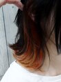 インナーをケアブリーチで(2~3回)後、オレンジとイエローベージュをランダムに入れました。このスタイルをブックマークしてカウンセリングの時にお使い下さい。