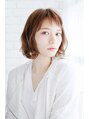 毛先を外ハネになるようにワンカールさせたナチュラルなスタイル。顔周りにレイヤーを少し入れて、くびれをデザインして動きがあるようにしました。