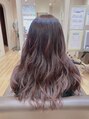 ロングのローレイヤースタイル+グラデーションカラー。既染部が明るめの方はブリーチなしでも綺麗なラベンダーカラーにできる場合があります。