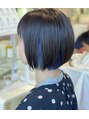 ボブにインナーブリーチを入れる事で、遊び心のあるスタイルになります。半分程の範囲で2回ブリーチを入れておりますが、上からかぶる髪で見た目のは落ち着いた雰囲気になります。