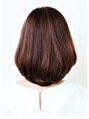 前上がりのボブ。 艶感がしっかり出るように質感調整を少し重ためにしてまとまり重視のカットをしています。顔周りに少しレイヤーを入れることで、輪郭を補正する効果が得られます。ハイライトをいれることでボブスタイルに立体感と表情を出してます!