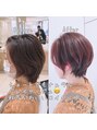 丸みショート。ショートヘアでもナチュラルなバレイヤージュで秋冬仕様に仕上げました!ロイヤルピンクがかわいい