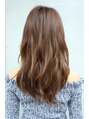 ロングのウェーブスタイルです。アイロンのミックス巻きで重ならない強めにランダムな毛流れをつくっています。内巻きと外巻きを繰り返して巻いてラフさを出しています。動きが出るよう全体は軽いスタイルに。