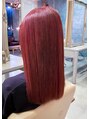 ブリーチをすることで叶う、好発色なワインレッドカラーはツヤ感もたっぷりで可愛いです◎ケアブリーチとトリートメントでしっかりケアしながら、ハイトーンカラーも楽しみましょう!