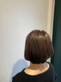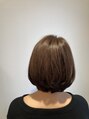 ミセス向けの秋冬ヘアでまとまりと軽さのあるショートボブ。カラー は外国人風な白髪染めでバイオレットベージュに!トリートメントもして頭皮の整体ヘッドスパでスッキリして頂きました!