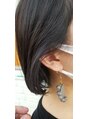 襟足ギリギリのシンプルなボブです♪カラーは所々ブリーチが入っていて、そこは青みが強く出ています^^パッと見はブルーブラックみたいです。長さはお顔に合わせて似合う長さがおすすめです!