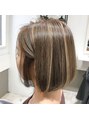 前下がりボブにミルクティーベージュのハイライトで作る大人な雰囲気のカッコいいスタイルになります。どこから分けてもいい感じに見えます!