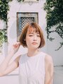 明るめベージュカラーの無造作ロブ☆くせ毛風なくしゅっとスタイリングでエフォートレスなスタイルに。短めシースルーバングでオシャレ感もアップ!!スタイリングはツヤ系ワックスでセミウェットな質感にするのがおすすめです☆