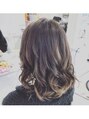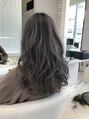 アンダーのオレンジをしっかり削ってからグレーアッシュをONしてます。ゆるい巻きをプレスすることで光に当たった時の繊細さがグッとアップします!