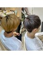 ブリーチ1回のベースにグレージュを☆黄色味が強い金髪にラベンダーをいれて黄色味をくすませかっこいいグレージュに!