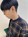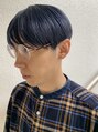 メンズ ハンサムショート。ヴィーガンブリーチでネイビーヘアに。暗めのネイビーが男ぽい。