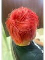 ビビットREDヘアーセルフブリーチからのワンブリーチ+オンカラーです。透明抜群のREDです。