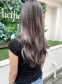 ブリーチを使ったバレイヤージュで明るいところを作って柔らかいシルバーベージュカラーをのせてます。根元が暗く毛先が明るいグラデーションカラーなので伸びてきても目立たない!!アレンジも可愛いのでオススメです!!