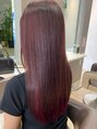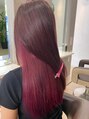 全体をピンク色に!新色のカラー剤を使い イゴラロイヤルピカサムのローズを使用綺麗なピンクの発色が望めます!