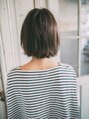 アゴラインの切りっぱなしボブにくせ毛風なウェーブをプラス。重ためベースにしつつも、内側に隙間をつくりつつ、軽さを出しておくのがポイント!!ボリューム調整をしておくことでウェーブでフォルムが広がりすぎるのを調整しています。