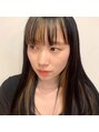 今年流行りのインナーカラー。肌馴染みのいいオレンジベージュに。全体は暗めでコントラストを聞かせぱつっとバングに相性◎