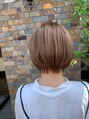 表面にレイヤーを入れて軽さのある前下がりボブにカットして元々ハイトーンだった毛先になじむようシークレットカラーでベージュ系に仕上げました。