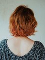大きめの波ウェーブがポイントのボブカット。ベースはナチュラルなワンレングスボブです。コテを使って表面に毛先外ハネのウェーブを作っています。